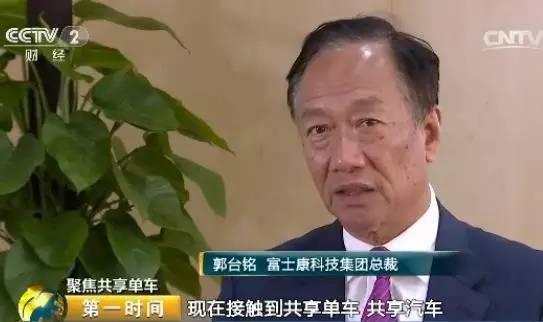 富士康科技集團(tuán)總裁 郭臺(tái)銘: 就是現(xiàn)在接觸到共享單車、共享汽車,進(jìn)入到這些很多的網(wǎng)絡(luò)的,等于說(shuō)硬件和軟件要結(jié)合的時(shí)代,所以說(shuō)富士康做到這個(gè)就蠻重要的。我們?cè)谥圃斓念I(lǐng)域,在設(shè)計(jì)開發(fā)的領(lǐng)域,可以把這家公司很快地讓它有一個(gè)市場(chǎng)占有率。