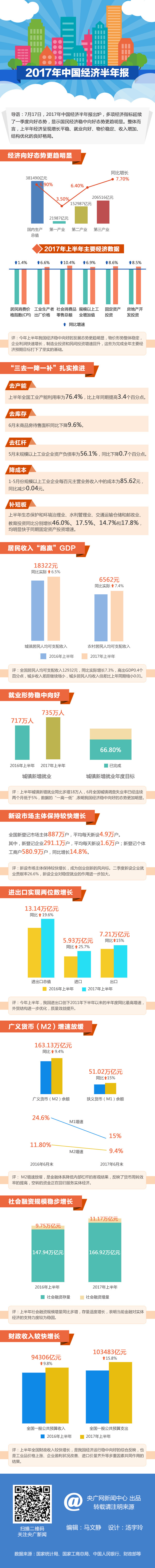 近日,2017年上半年中國經(jīng)濟數(shù)據(jù)陸續(xù)出爐。數(shù)據(jù)的高低起伏背后,究竟傳達(dá)出哪些經(jīng)濟信號?央廣網(wǎng)記者精心制作了一份2017年中國經(jīng)濟半年報,帶你看看中國經(jīng)濟變化,詳解中國經(jīng)濟數(shù)據(jù)背后那些事兒!