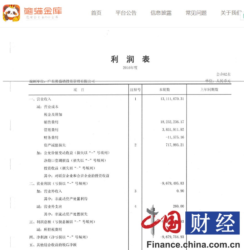 中國(guó)網(wǎng)財(cái)經(jīng)記者發(fā)現(xiàn),在亮眼的成交數(shù)據(jù)背后,熊貓金庫(kù)卻面臨虧損。據(jù)其官方網(wǎng)站披露的《廣東熊貓鎮(zhèn)投資管理有限公司2016年度審計(jì)報(bào)告》(以下簡(jiǎn)稱“審計(jì)報(bào)告”)顯示,2016年熊貓金庫(kù)營(yíng)業(yè)收入為1311.11萬元,凈利潤(rùn)為-967.96萬元。