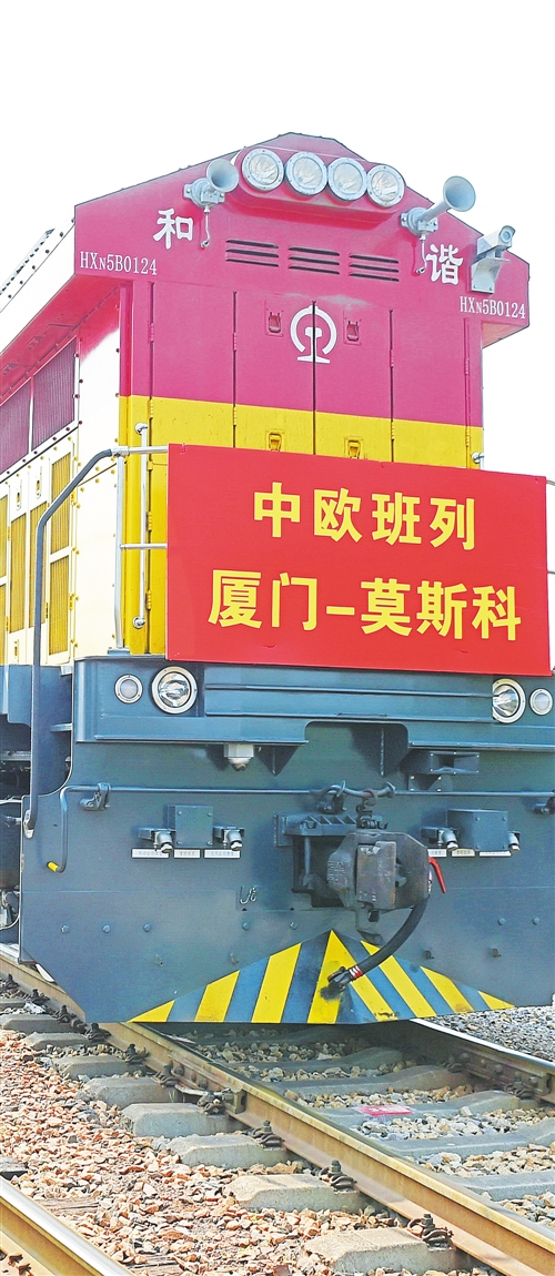 圖④ 中歐(廈門—莫斯科)直達貨運班列從廈門自貿(mào)區(qū)海滄貨場開出。 新華社記者 林善傳攝