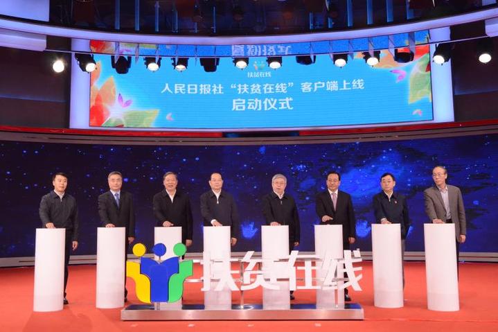 人民日報社“扶貧在線”客戶端11月23日上線。人民日報社社長楊振武、國務(wù)院扶貧辦主任劉永富出席上線儀式。