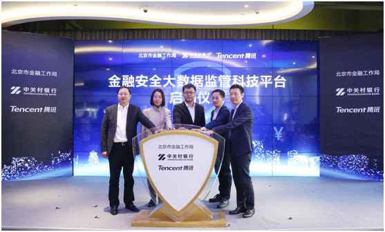 。▓D為北京市金融工作局、中關(guān)村銀行及騰訊公司領(lǐng)導(dǎo)共同發(fā)布金融安全大數(shù)據(jù)監(jiān)管平臺(tái))
