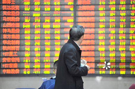 股民在某證券營業(yè)部關(guān)注股市行情