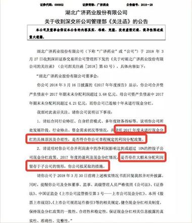 一、聚焦——廣濟(jì)藥業(yè)十年不分紅,深交所下發(fā)關(guān)注函