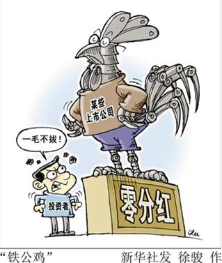 不過鐵公雞還要區(qū)別看待,有些是沒錢可分,業(yè)務(wù)虧損無可奈何,有些卻是實(shí)現(xiàn)盈利卻還是一毛不拔。據(jù)中證中小投資者服務(wù)中心相關(guān)負(fù)責(zé)人介紹,上市公司達(dá)到分紅條件,而不進(jìn)行現(xiàn)金分紅的原因主要有三類,一是上市公司存在擴(kuò)大生產(chǎn)建設(shè)、再投資項(xiàng)目等重大支出;二是用于其他非主營用途,比如購買理財(cái)產(chǎn)品;三是故意不分紅。