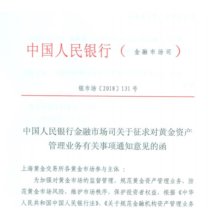 央行《關于征求黃金資產管理業(yè)務有關事項通知(征求意見稿)》