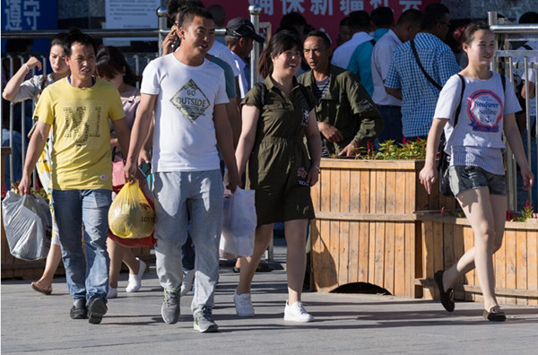在中哈霍爾果斯國際邊境合作中心,拎著大包小包的游客與商人隨處可見