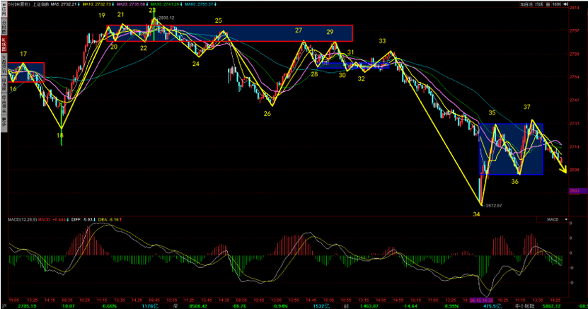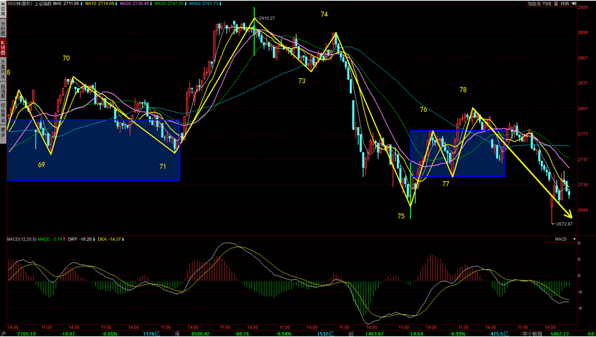 結(jié)合上證指數(shù)5分鐘圖形來(lái)看,接下來(lái)上證指數(shù)依然存在兩種可能走法,一種就是5分鐘類二買(mǎi)觸發(fā)的反彈,拉回30分鐘76-78中樞。還有一種就是5分鐘繼續(xù)向下,形成5分鐘中樞背馳。