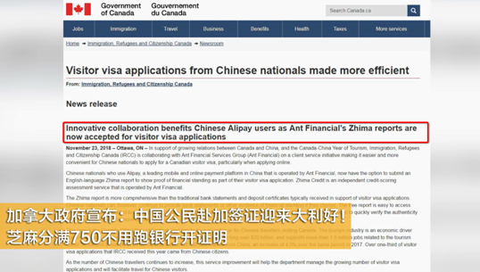近日,加拿大移民部(IRCC)在官網(wǎng)對外宣布:現(xiàn)在開始,中國游客可以自主選擇提交芝麻信用簽證報告,用作財務(wù)及履約能力證明,“這讓中國公民更便捷地去申請加拿大簽證”。