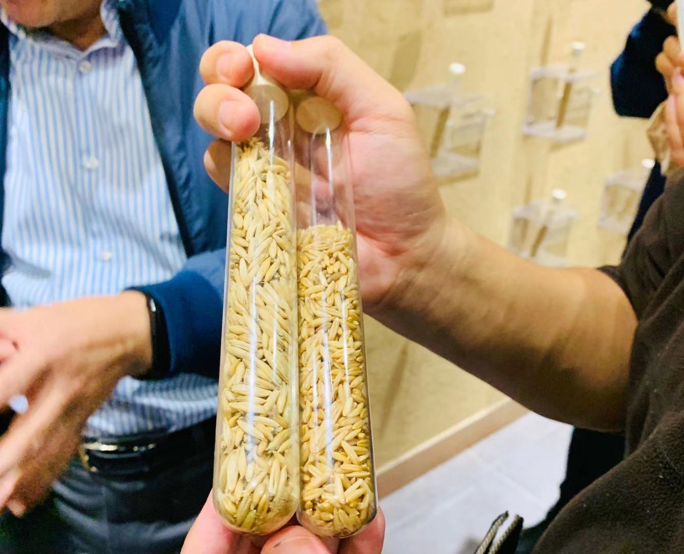 陰山優(yōu)麥公司工作人員向記者展示燕麥種子。(央廣網(wǎng)記者馬文靜 攝)