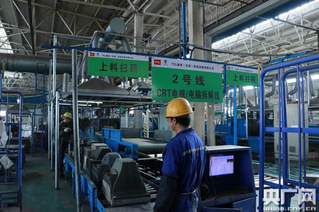 位于靜海區(qū)的天津子牙經(jīng)濟(jì)技術(shù)開(kāi)發(fā)區(qū),是全國(guó)第一家以循環(huán)經(jīng)濟(jì)為主導(dǎo)產(chǎn)業(yè)的國(guó)家級(jí)經(jīng)濟(jì)技術(shù)開(kāi)發(fā)區(qū)。近日,記者來(lái)到子牙經(jīng)濟(jì)技術(shù)開(kāi)發(fā)區(qū),走進(jìn)TCL奧博(天津)環(huán)保發(fā)展有限公司的拆解車(chē)間,只見(jiàn)在家電拆解流水線(xiàn)上,一臺(tái)臺(tái)廢舊電視機(jī)正被工人們熟練的拆解成顯示屏、電路板、金屬框架等多個(gè)部分,經(jīng)過(guò)后期處理,這些部件中的塑料和金屬就可以成為生產(chǎn)新產(chǎn)品的原材料。