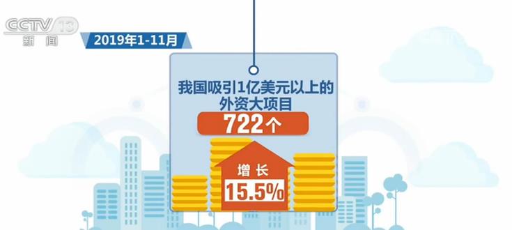 前11個月,我國吸引1億美元以上的外資大項(xiàng)目722個,增長15.5%;“一帶一路”沿線國家、東盟對華投資分別增長23.5%和27.3%。