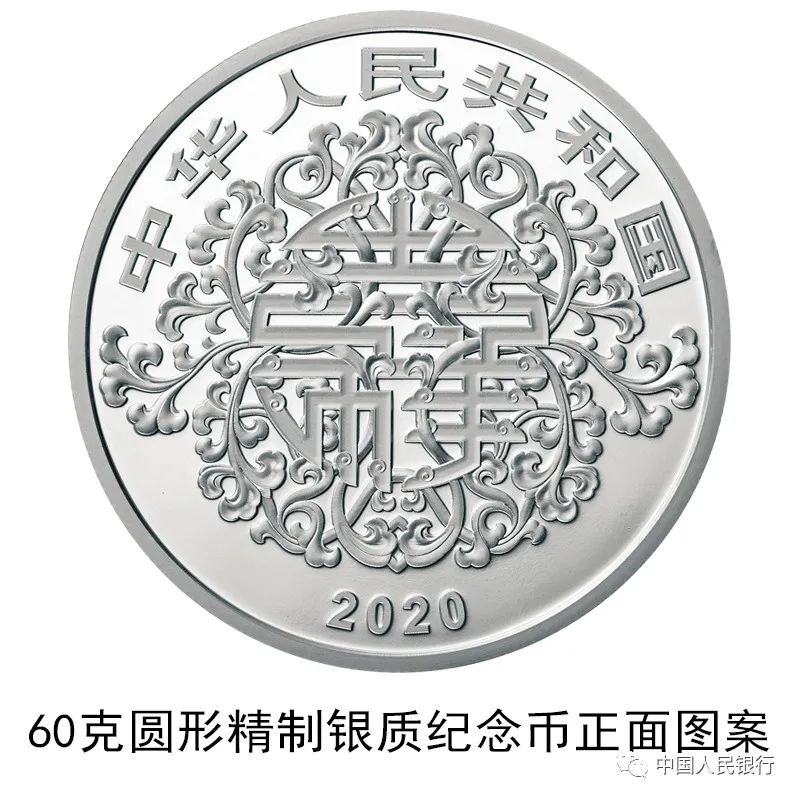 60克圓形銀質(zhì)紀(jì)念幣為精制幣,含純銀60克,直徑40毫米,面額20元,成色99.9%,最大發(fā)行量20000枚。