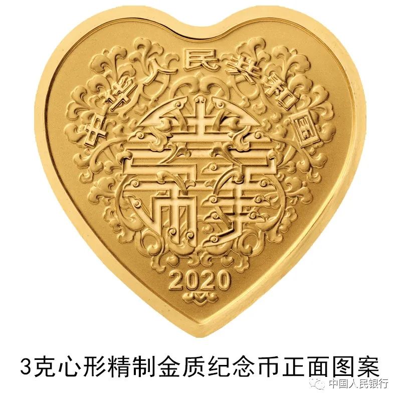 3克心形金質(zhì)紀(jì)念幣為精制幣,含純金3克,外接正方形邊長(zhǎng)18毫米,面額50元,成色99.9%,最大發(fā)行量10000枚。