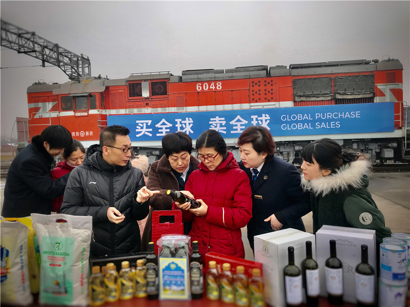 春節(jié)臨近,新筑車站舉辦首屆中歐班列網(wǎng)上年貨節(jié)。(莊敬平 攝 中國鐵路西安局供圖)
