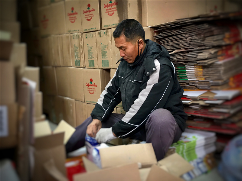 企業(yè)工作人員將“洋年貨”分揀打包發(fā)貨。(莊敬平 攝 中國鐵路西安局供圖)