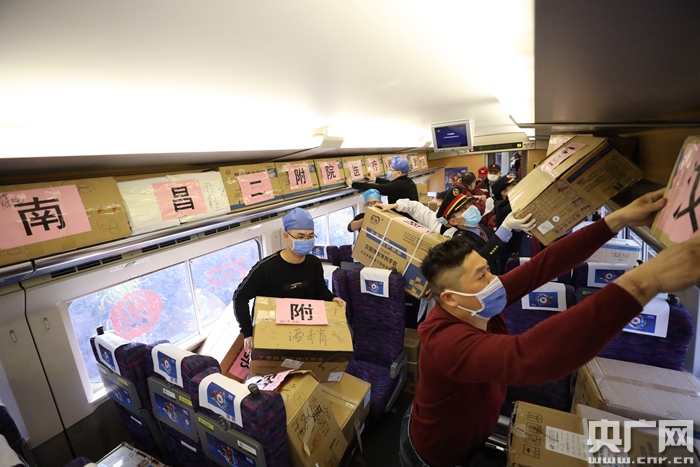 在疫情防控中,鐵路部門運用高鐵、普速客車行李車和貨車整車等多種途徑,特別是充分發(fā)揮高鐵快速便捷優(yōu)勢,迅速向湖北武漢等疫情嚴重地區(qū)運送防控人員和防疫、生活物資。