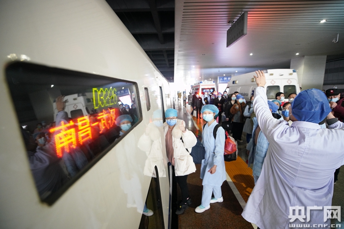 當天上午九點半,在接到江西省派駐援鄂醫(yī)療隊的乘車請求后,中國鐵路南昌局立即制定列車運輸方案,緊急調(diào)集動車組列車,申請開行計劃,抽調(diào)客運乘務(wù)人員,在不到1小時的時間統(tǒng)籌完成各項準備工作,為開行援鄂動車專列提供保障。