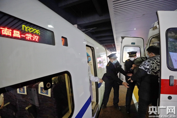 為確保醫(yī)療隊及物資以最快速度上車,南昌站及時開辟“綠色通道”,抽調(diào)30多名黨員協(xié)助裝運醫(yī)療物資,沿途不辦理客運業(yè)務(wù)。最終只用了101分鐘,當天下午3點46分,這趟D3226次動車組專列抵達湖北武漢。
