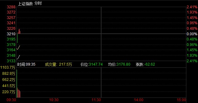 開盤:兩市跳空低開 滬指跌2.08%報(bào)3144點(diǎn)