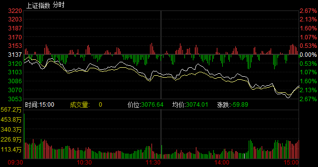 收盤:滬指震蕩下調(diào)跌1.93% 失守3100點