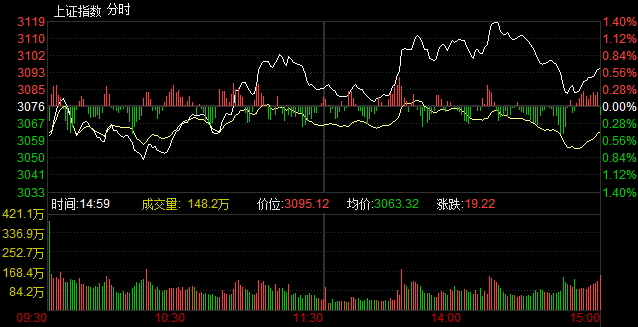 央廣網(wǎng)財經(jīng)北京2月9日消息 據(jù)經(jīng)濟(jì)之聲《交易實況》報道,兩市開盤漲跌互現(xiàn),在券商、保險等板塊的帶動下,滬指有所回升,午后兩點十四分左右出現(xiàn)高點3118點,隨后震蕩小幅下滑。截至收盤,滬指報3095.12點,上漲19.22點,漲幅0.62%,成交2407億元;深成指報10868.1點,上漲77.04點,漲幅0.71%,成交1954億元;創(chuàng)業(yè)板指報1708.85點,下跌22.12點,跌幅1.28%,成交415.6億元。