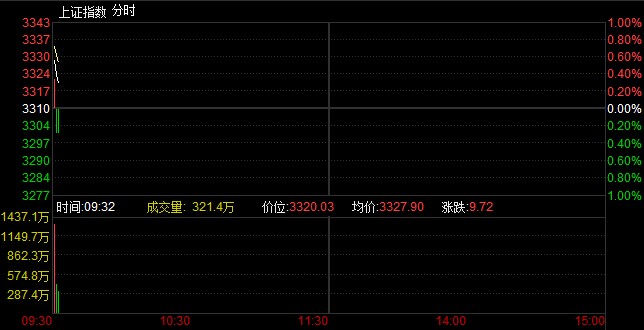 央廣網(wǎng)財經(jīng)北京3月2日消息 據(jù)經(jīng)濟之聲《交易實況》報道,兩市開盤雙雙高開,滬指報3332.72點,上漲22.42點,漲幅0.68%,成交55.42億元;深成指報11869.9點,上漲112.27點,漲幅0.95%,成交45.40億元;創(chuàng)業(yè)板指報1944.11點,上漲16.06點,漲幅0.83%,成交11.25億元。
