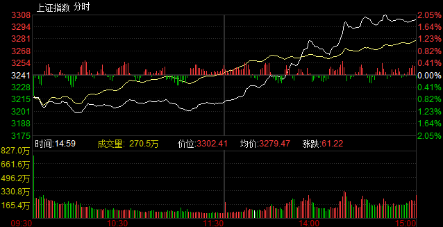 收盤:滬指反彈走高漲1.89%報3302點 銀行板塊領漲