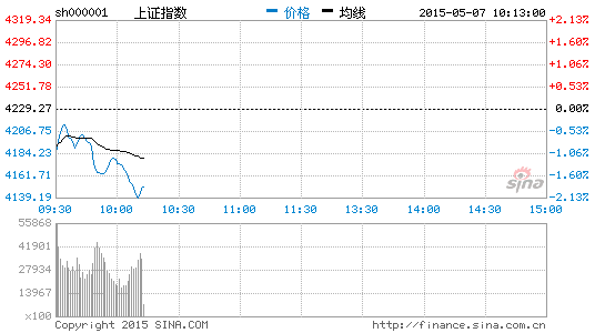 央廣網(wǎng)北京5月7日消息 據(jù)經(jīng)濟(jì)之聲《交易實(shí)況》報(bào)道,周四開(kāi)盤,滬指低開(kāi)低走,從盤面看銀行、券商漲幅靠前,截止發(fā)稿滬指報(bào)4168.48點(diǎn),跌62.65點(diǎn),跌逾1%。