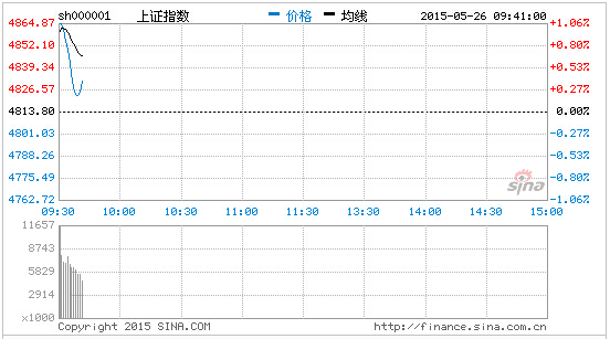 央廣網(wǎng)北京5月26日消息 據(jù)經(jīng)濟(jì)之聲《交易實(shí)況》報道,周二開盤,兩市大幅高開,滬指報4854.85點(diǎn),漲41.05點(diǎn),漲幅0.85%,深成指報16456.23點(diǎn),漲105.17點(diǎn),漲0.64幅%,創(chuàng)業(yè)板報3471.80點(diǎn),漲3.88點(diǎn),漲幅0.11%。
