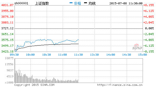 午評:滬指盤中下跌逾8%后探底回升 報3582點