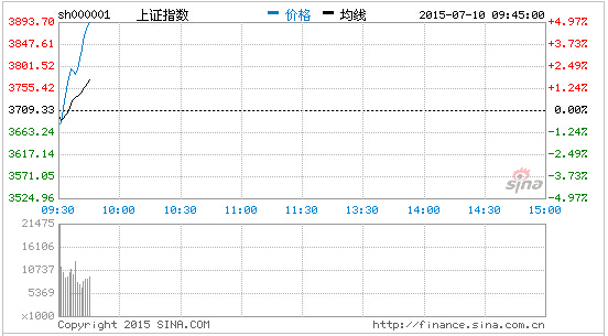央廣網(wǎng)北京7月10日消息 據(jù)經濟之聲《交易實況》報道,周五早盤滬指低開高走,大幅拉升,截止發(fā)稿,報3786點,漲76點,漲幅2.13%。