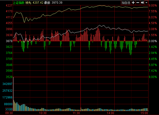截至收盤,滬指報3970.39點,漲92.59點,漲幅2.39%,成交7824.31億,創(chuàng)業(yè)板指報2683.07點,漲147.18點,漲幅5.80%,成交856.68億。