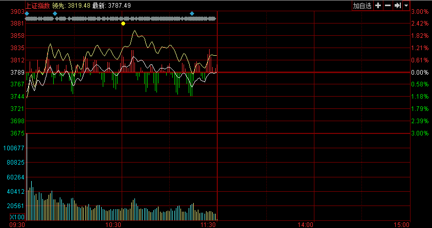 滬指寬幅震蕩 多空爭(zhēng)奪3800點(diǎn)整數(shù)關(guān)口