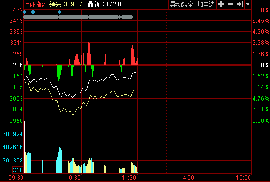 截止午盤,滬指報3172.03點,跌33.96點,跌幅1.06%。