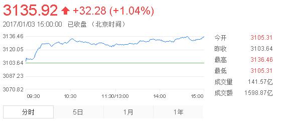 收盤:三大股指喜迎開門紅 滬指漲1.04%強(qiáng)勢反彈