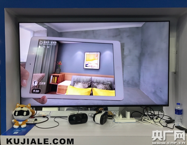 記者戴上這個VR眼鏡后,設(shè)計方案中的條紋壁紙、木地板、北歐風(fēng)家具仿佛就在眼前,像是走進了剛裝修好的房間?峒覙菲放坪献鲗T錢天穎說:“這是一個VR的設(shè)計方案,你可以進入每個房間里感受,我們可以把所有在酷家樂平臺上面的方案一鍵切換到VR設(shè)備,直接配合這個眼鏡就可以有浸入式的感受!