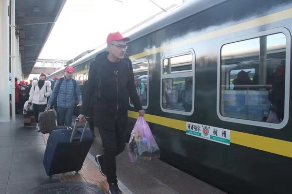 務(wù)工人員乘車(chē)(中鐵哈爾濱局供圖)