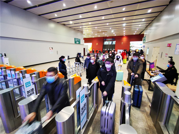 北京南站無感測溫儀加快旅客出站(央廣網(wǎng)發(fā) 中國鐵路北京局供圖)