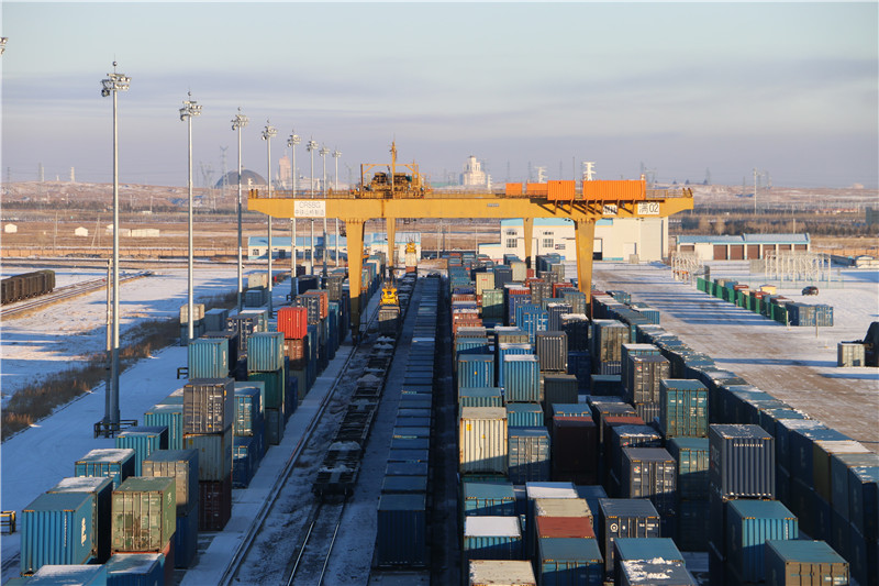 等待裝車的集裝箱(中鐵哈爾濱局供圖)