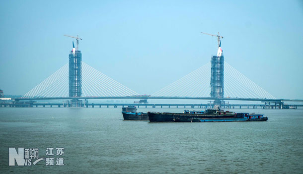 中廣網(wǎng)南京5月21日消息 20日,長1046米的江蘇如皋長江大橋橋梁主體正式合龍,預(yù)計(jì)2013年底竣工通車。如皋長江大橋于2010年8月開工建設(shè),投資5.6億元,采用雙塔斜拉橋設(shè)計(jì)?⒐ねㄜ嚭螅绺揲L江大橋?qū)⑦B接蘇南沿江高速公路,通達(dá)蘇南各大城市,成為如皋乃至蘇北地區(qū)承南啟北的重要交通干線。(黃哲 攝)