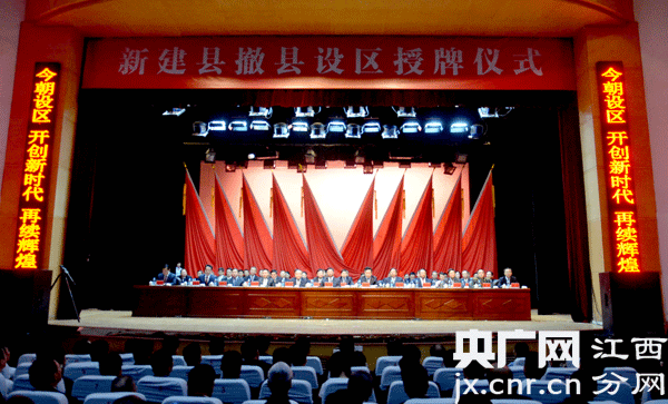 央廣網(wǎng)南昌9月28日消息(蔡馥蔚)28日,新建“撤縣設(shè)區(qū)”授牌儀式在南昌舉行。新建正式從“縣”的歷史,跨入“區(qū)”的時代。