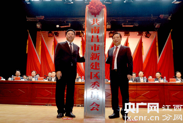 南昌市長郭安(左)為中共南昌市新建區(qū)委員會授牌