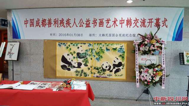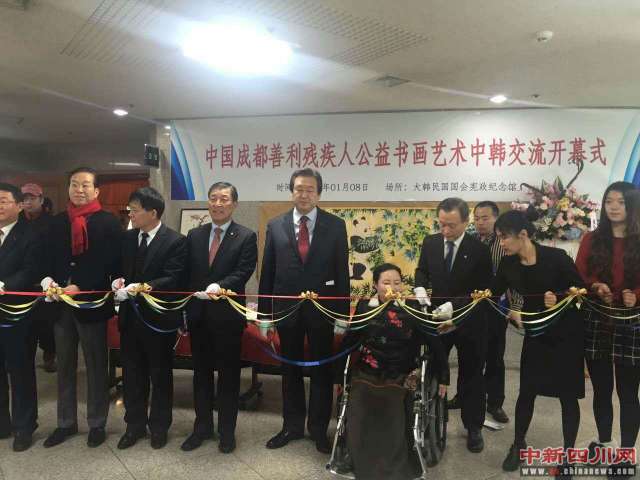 央廣網(wǎng)江西分網(wǎng)1月9日消息 8日,成都善利殘疾人公益書(shū)畫(huà)藝術(shù)中韓交流會(huì)在韓國(guó)首爾隆重舉行。韓國(guó)執(zhí)政黨新國(guó)家黨中央委員會(huì)代表黨魁、國(guó)會(huì)議員金武星, 韓國(guó)執(zhí)政黨新國(guó)家黨中央委員會(huì)總長(zhǎng)、國(guó)會(huì)議員黃震夏, 韓國(guó)執(zhí)政黨新國(guó)家黨中央委員會(huì)國(guó)民同胞首席副委員長(zhǎng)、國(guó)會(huì)議員楊昶榮,前大韓民國(guó)駐華大使館大使、國(guó)會(huì)議員權(quán)寧世, 韓國(guó)執(zhí)政黨新國(guó)家黨中央委員會(huì)總干事樸京培, 世界韓人商工總聯(lián)合會(huì)對(duì)外協(xié)力委員長(zhǎng)、中韓自由貿(mào)易(FTA)民間商貿(mào)促進(jìn)發(fā)展委員會(huì)委員長(zhǎng)金振興,以及成都善利殘疾人公益書(shū)畫(huà)藝術(shù)交流團(tuán)代表逾百人出席參加了開(kāi)幕式。