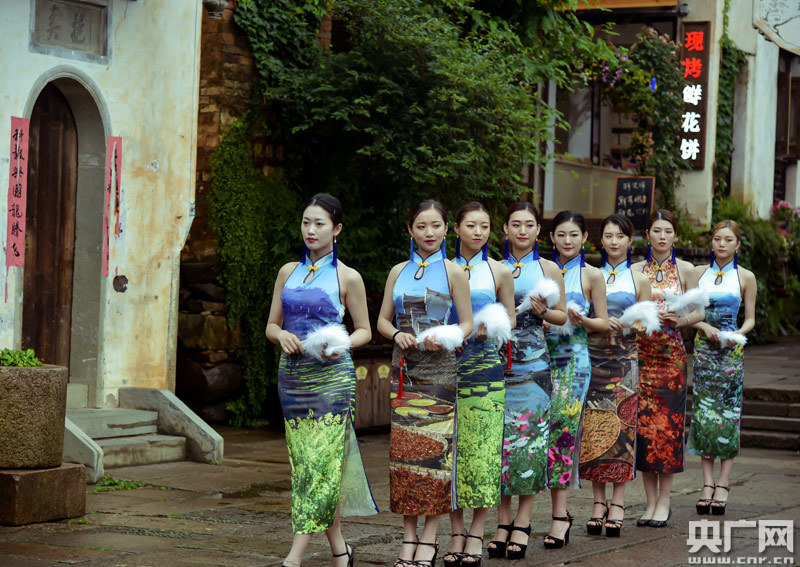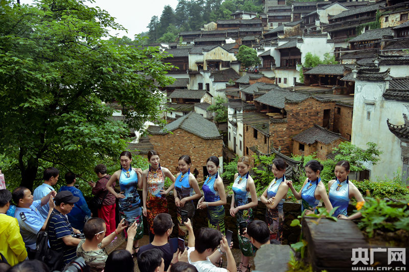 一場(chǎng)快閃以流動(dòng)的旋律、瀟灑的畫(huà)意,展現(xiàn)女子典雅賢淑的氣質(zhì)和篁嶺靚麗綽約的風(fēng)采,讓風(fēng)光旗袍與秀美鄉(xiāng)村完美融合。這場(chǎng)“旗袍秀”也展示著中國(guó)傳統(tǒng)服飾與這古老徽州村落文化巧妙融合的無(wú)限魅力。