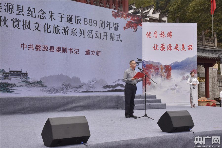央廣網(wǎng)婺源10月25日消息 10月25日,紀(jì)念朱子誕辰889周年暨曬秋賞楓文化旅游系列活動開幕式在婺源文公山景區(qū)舉行。