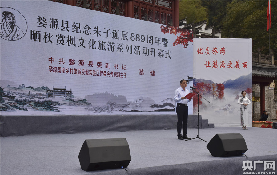 婺源縣委副書記、婺源國家鄉(xiāng)村旅游度假實驗區(qū)管委會專職副主任葛健宣布紀(jì)念朱子誕辰889周年暨曬秋賞楓文化旅游系列活動主要活動內(nèi)容