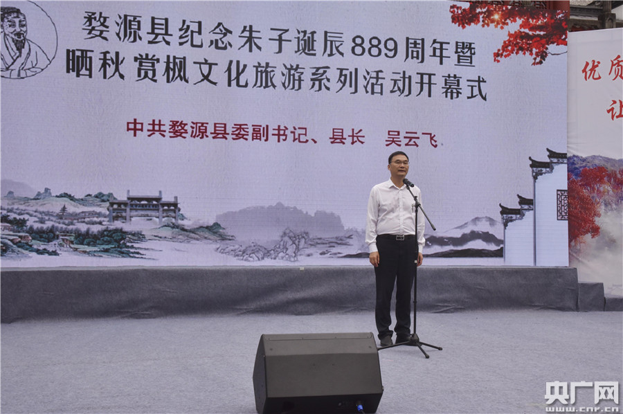 婺源縣委副書記、縣長吳云飛宣布婺源縣紀(jì)念朱子誕辰889周年暨曬秋賞楓文化旅游系列活動開幕
