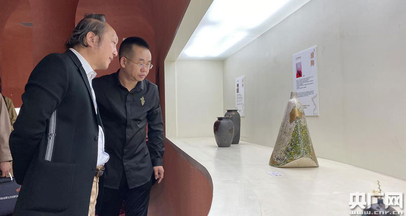 中國(guó)美協(xié)工藝美術(shù)委員會(huì)委員、江西省美協(xié)副主席支林在參觀展覽(央廣網(wǎng)發(fā) 通訊員提供)