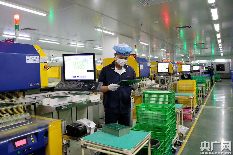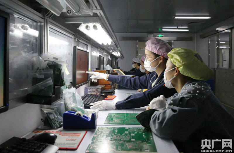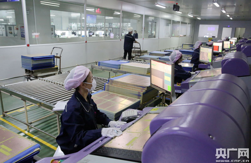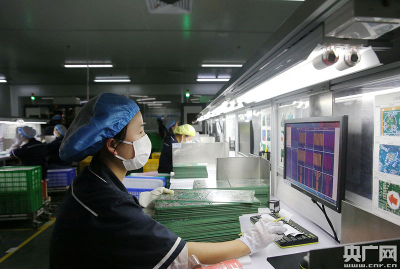 3月26日,江西省吉安市吉水縣工業(yè)園區(qū),專業(yè)從事線路板外貿(mào)訂單生產(chǎn)的江西景旺精密電路有限公司生產(chǎn)車間,工人正在高度自動(dòng)化生產(chǎn)線上進(jìn)行生產(chǎn)。